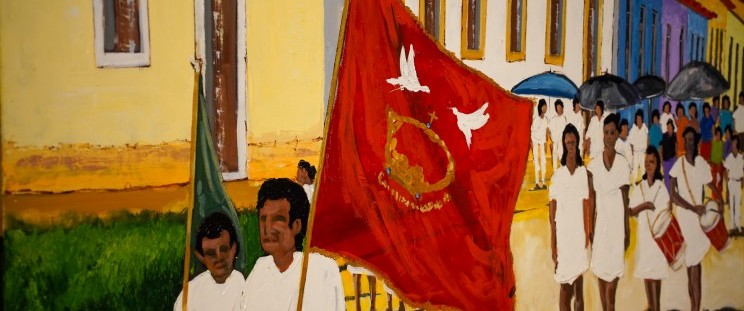 As telas revelam o olhar sensível do artista para as paisagens urbanas, bem como aos traços arquitetônicos coloniais e a efervescência cultural de São Luís. Ao mesmo tempo, Betto Lima celebra a diversidade das manifestações populares do Maranhão, como o bumba meu boi, o tambor de crioula e a tradicional Festa do Divino Espírito Santo, na cidade de Alcântara.