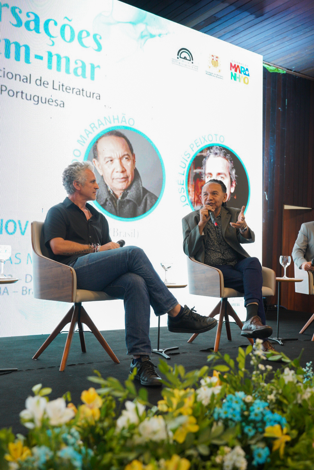 A programação da noite trouxe um diálogo entre o poeta maranhense Salgado Maranhão, autor premiado e com obra traduzida para diversos idiomas, e o escritor português José Luís Peixoto, um dos nomes mais expressivos da literatura portuguesa contemporânea. A mediação foi conduzida pelo historiador e jornalista Marcus Saldanha e pela professora da UEMA Ana Patrícia Sá Martins.